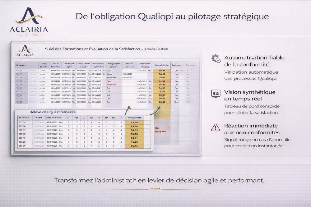 Je développe des outils de pilotage structurés sous Excel, intégrant indicateurs clés, suivis budgétaires et tableaux de bord, afin de permettre aux équipes RH et aux directions de disposer d’une lecture fiable et exploitable de leur activité formation.