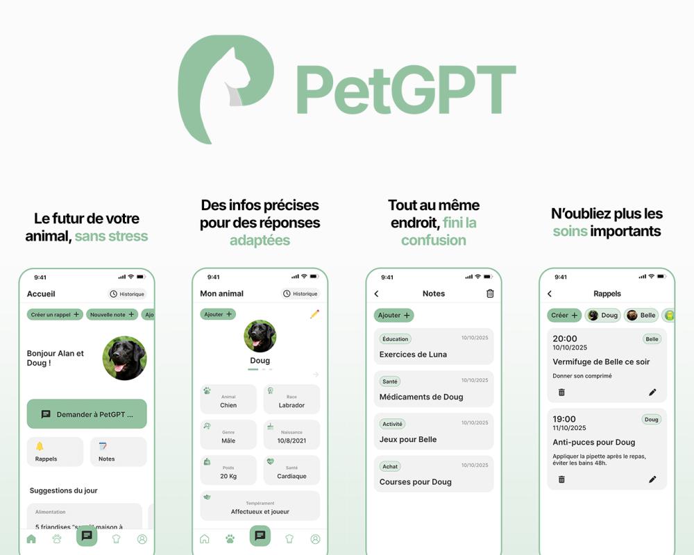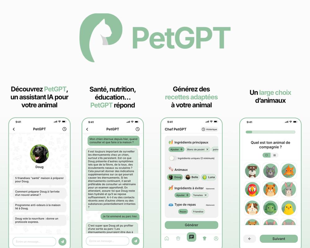 J’ai conçu et développé une application mobile complète nommée PetGPT, disponible sur l’App Store.