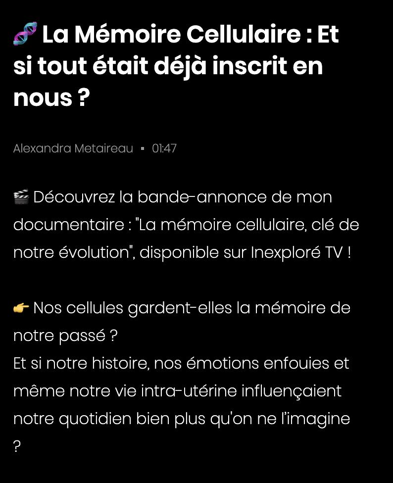 *"Mémoire cellulaire, la clé de notre évolution" | Documentaire 50' | Inexploré TV