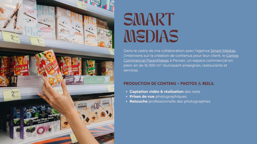 J’interviens notamment pour des agences comme Smart Medias (création de contenu pour le Centre Commercial Parenthèses) et pour des marques telles que The Sposa Group, SAAJ Paris, Paul & Nathalie, Immersive Garden, Iconik Immobilier ou les agences Planeswalkr et Oxygen.