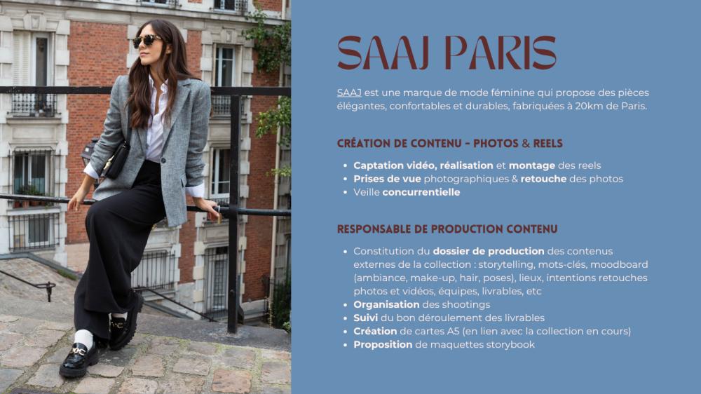 - Production de contenus photo et vidéo (posts, stories, reels)