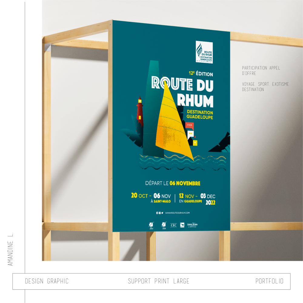 Conception graphique des identités de courses au large, élaboration de chartes graphiques, création d’affiches officielles et déclinaison de l’univers graphique sur supports imprimés et digitaux. Gestion de budget, production, annuaire de prestataires et prestations, planning de production et de pose. Conception de cahiers des charges pour des consultations auprès de prestataires. Participations à La Solitaire du Figaro (2020, 2021, 2022), La Transat en Double (2021), La Route du Rhum-Destination Guadeloupe (2022).
