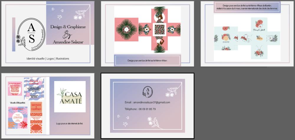 Graphiste passionnée, je m’appelle Amandine Salazar. À travers le design graphique et l’illustration, je crée des identités visuelles uniques qui traduisent les valeurs et l’univers de chaque projet. Mon travail est réalisé principalement sur Adobe Illustrator.