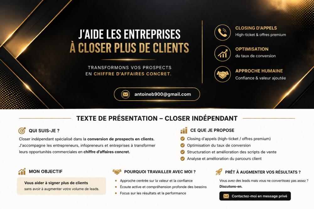 Je suis closer, spécialisé dans la vente à forte valeur ajoutée (high ticket).