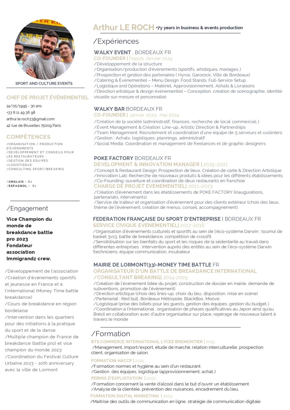Après 7 ans d’expérience dans l'évènementiel à Bordeaux, je m’installe à Paris pour mettre mon savoir-faire au service de projets plus ambitieux. Organisé, réactif et passionné, je peux organiser un événement de A à Z du concept à la production terrain.