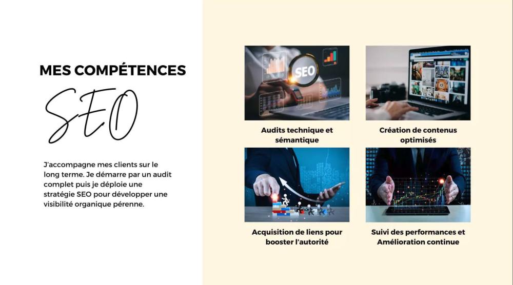J’interviens aussi bien sur la stratégie SEO globale que sur l’optimisation technique, la création de contenus performants et l’accompagnement à long terme.