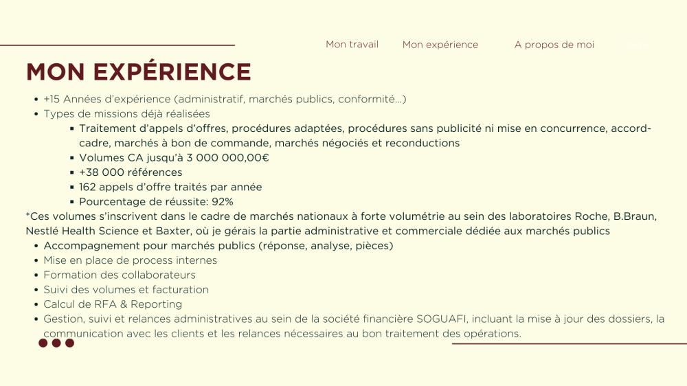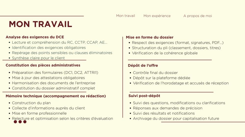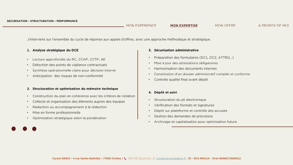 Spécialisée dans la gestion et la réponse aux appels d’offres, j’assure également la conformité administrative et le suivi réglementaire des dossiers.