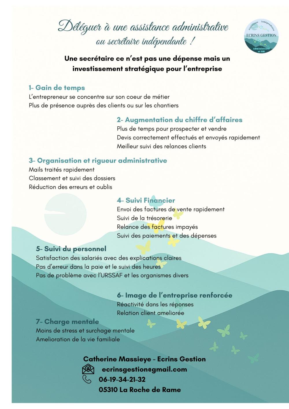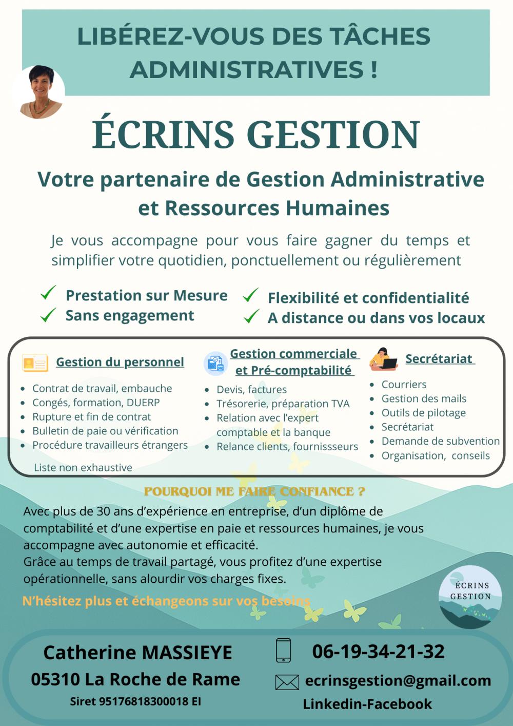 J’ai créé mon entreprise ÉCRINS GESTION pour aider les entrepreneurs dans la gestion quotidienne, la paie et la gestion du personnel.