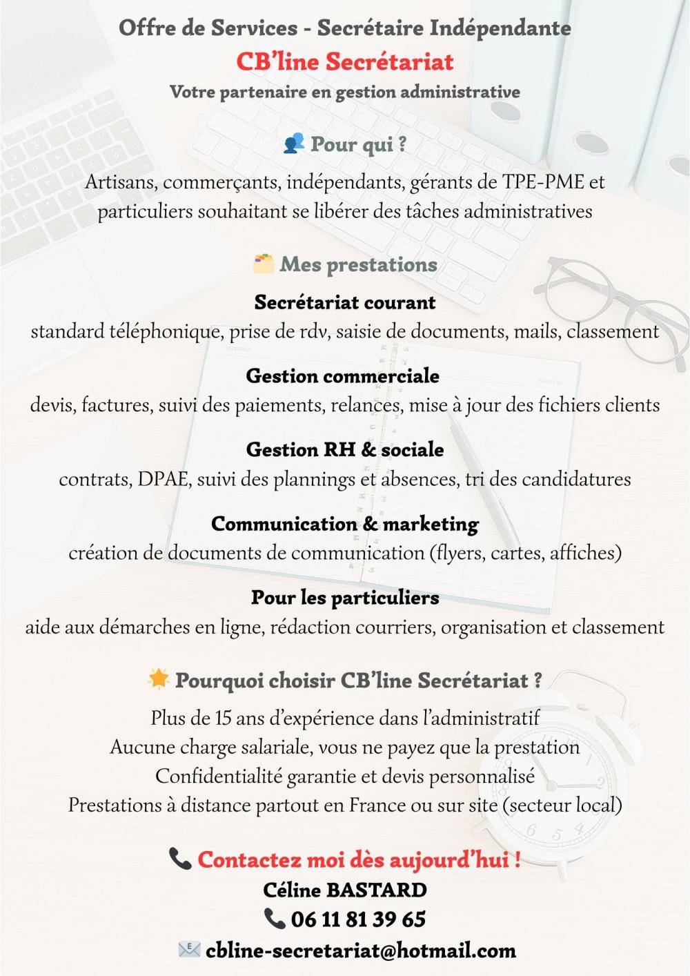 Je suis Céline Bastard, fondatrice de CB’line Secrétariat, secrétaire indépendante basée à Availles-en-Châtellerault (Vienne – 86).