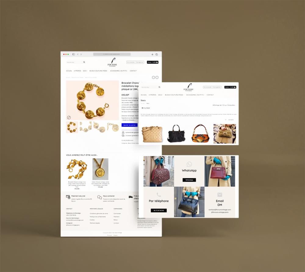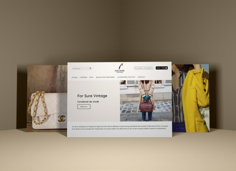 Création e-shop international Forsure-vintage.com, identité visuelle, design, mise en place du site et formation...;