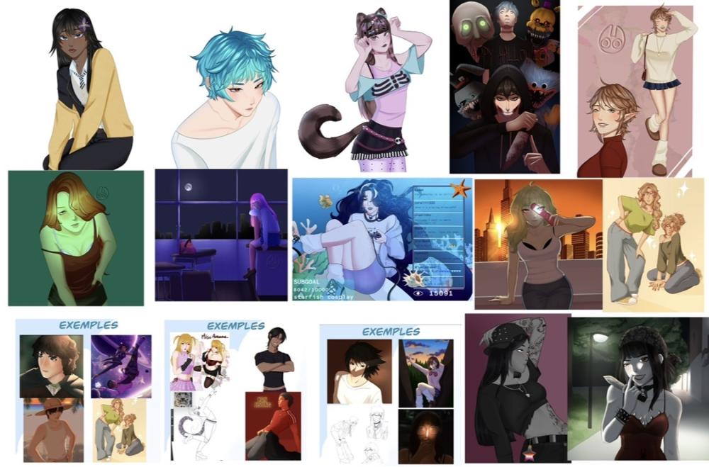 Stages orientés illustration et graphisme : conception d’images, déclinaisons, mises en page, rendus propres pour usage pro. Commandes privées déjà livrées à des particuliers : portraits, illustrations dédiées, demandes spécifiques exécutées sans dérive.