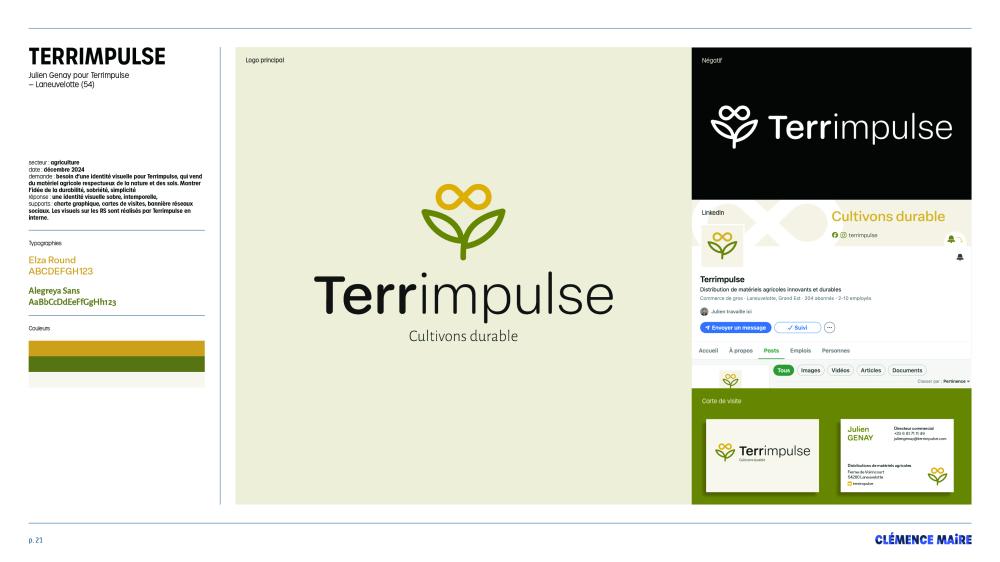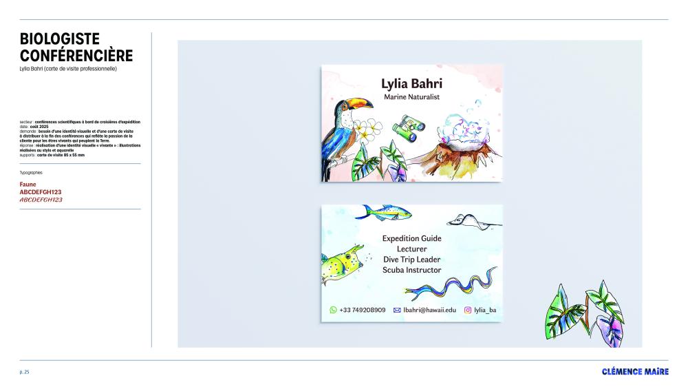 Aujourd’hui, j’accompagne aussi bien des entrepreneurs et entrepreneuses dans la création de l’identité visuelle de leur activité, que des entreprises ou institutions publiques dans la réalisation de supports de communication imprimés ou numérique.