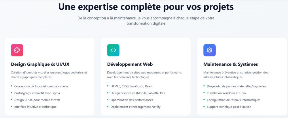 En tant qu'expert pluridisciplinaire, j'interviens sur toute la chaîne de valeur digitale : de la conception visuelle à la mise en œuvre technique et la maintenance des infrastructures.