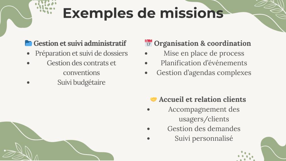 J’accompagne les consultants, TPE et PME en prenant en charge leurs tâches administratives et rédactionnelles. Mon objectif : vous libérer du temps, alléger votre charge mentale et vous permettre de vous concentrer sur ce qui compte vraiment : développer votre activité.
