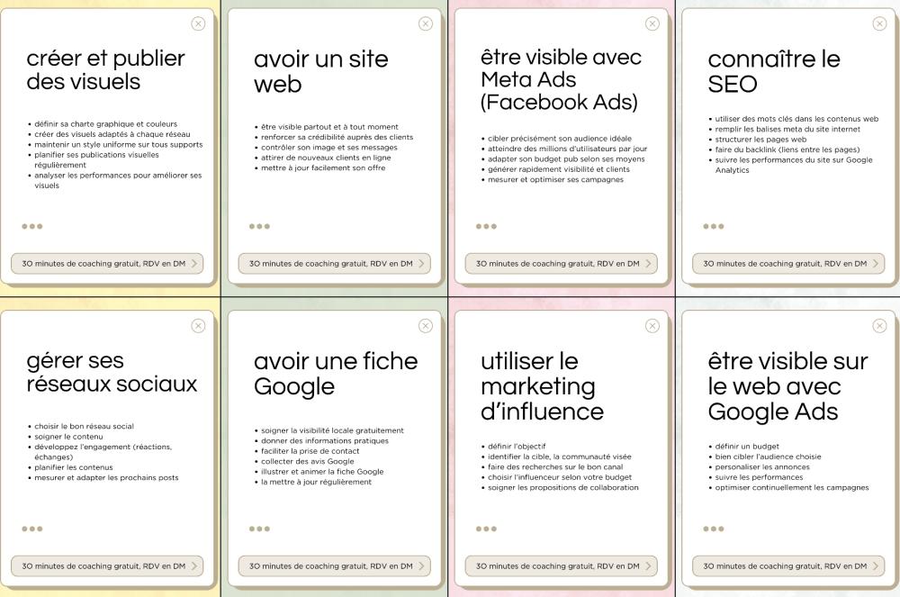 J’accompagne les entreprises, startups et associations qui souhaitent déléguer tout ou partie de leurs projets digitaux ou bénéficier d’un accompagnement marketing stratégique et opérationnel.