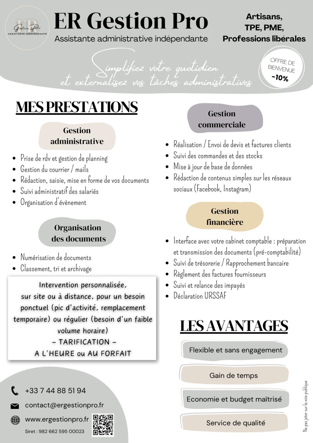 Mon objectif : vous garantir un accompagnement sur-mesure, fiable et flexible pour simplifier votre gestion administrative et vous libérer du temps afin que vous puissiez vous consacrer pleinement au développement de votre activité.