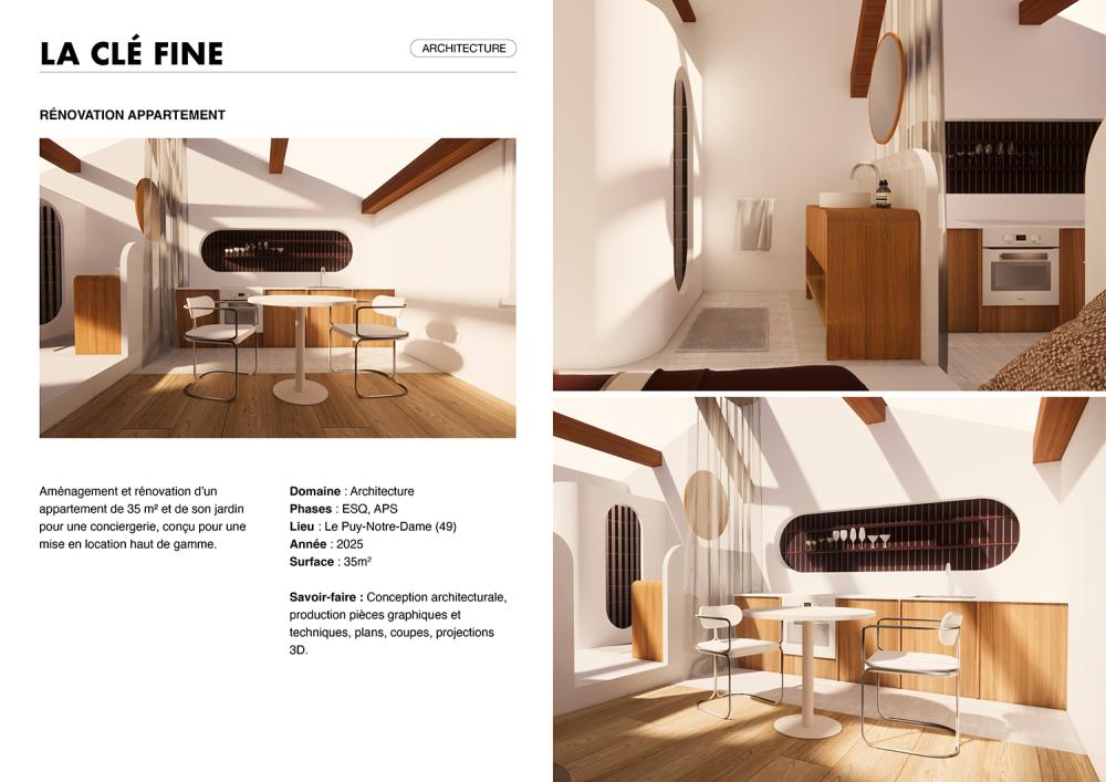 Architecte diplômée de l'École Nationale d'Architecture de Lyon en 2021, je conçois des projets qui fusionnent architecture, design, photographie et graphisme. Passionnée par les multiples facettes du monde de l'art, j'explore une grande diversité de domaines : architecture, architecture d'intérieur, graphisme, mise en page, identité visuelle, photographie, et maquettes. Mon approche polyvalente me permet de créer des œuvres uniques, riches de cette diversité créative.