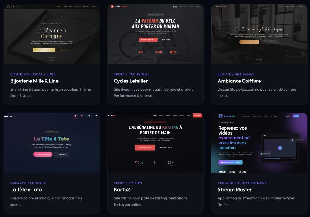 Developpeur web freelance base dans la Nievre, je cree des sites internet modernes et optimises pour les artisans, commercants et PME. Specialise dans les sites vitrines sur-mesure avec un design premium et un referencement SEO local pour maximiser la visibilite de mes clients sur Google. Je propose un accompagnement personnalise de la conception a la mise en ligne.