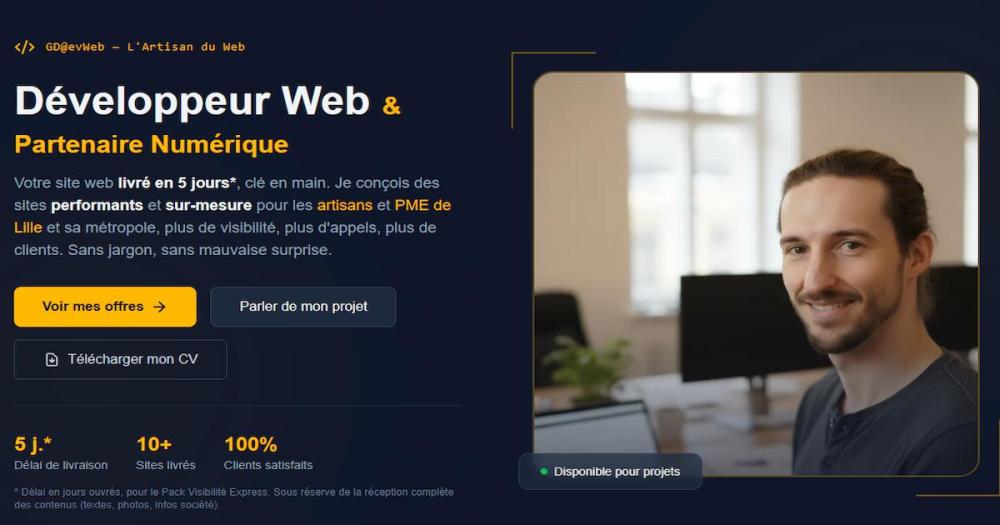 Développeur web freelance spécialisé dans la création de sites performants pour PME et artisans de la métropole lilloise.