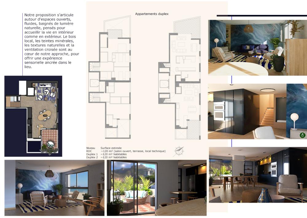 Concours logements collectifs (ZAC Jolivetterie), réhabilitation ERP, production de plans 2D/3D.