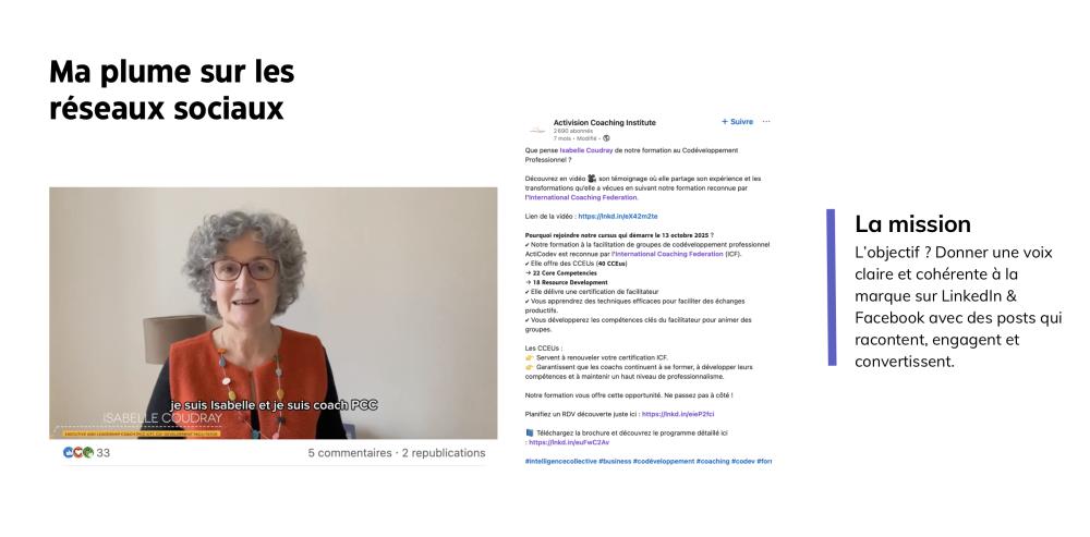 - Ghostwriting : posts des réseaux sociaux & Ads (LinkedIn, Facebook, Instagram)