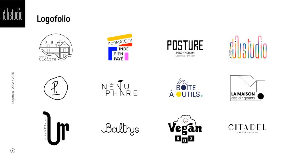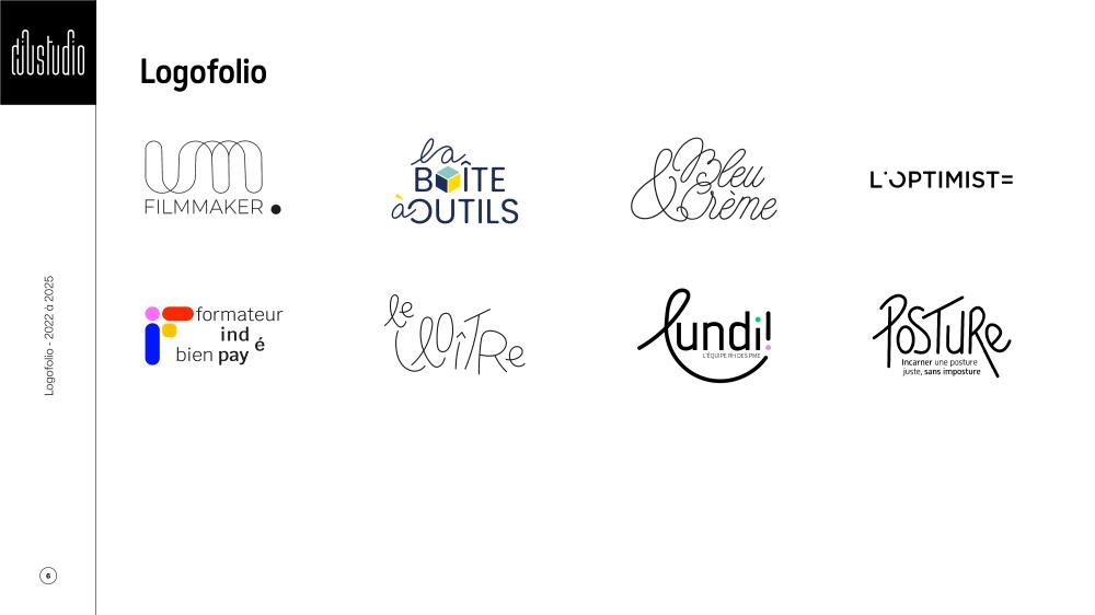 · Je conçois des identités visuelles où le logo devient visage et l’univers de marque, corps et orchestre plus largement la direction artistique de chaque projet.
