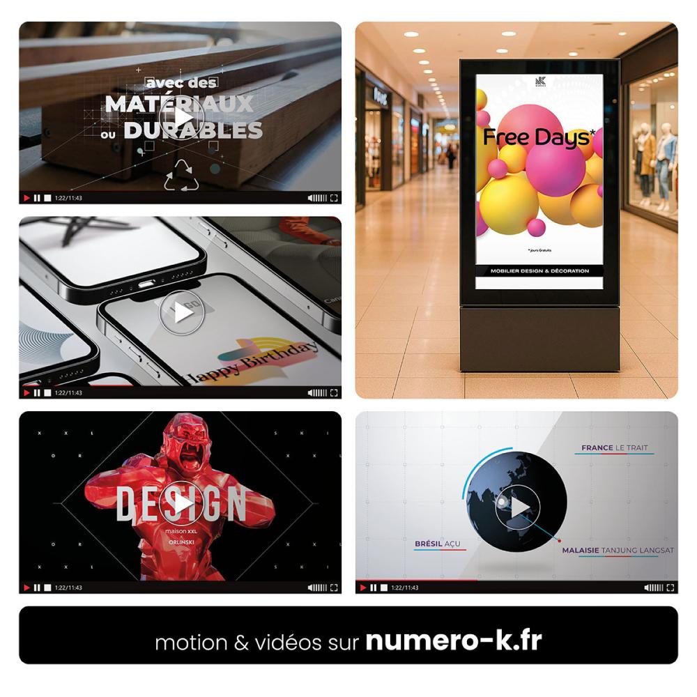 -> Réalisation de vidéos promotionnelles : vitrines de magasin, panneaux urbains, publicités réseaux sociaux, à partir de contenus fournis ou en création libre.
