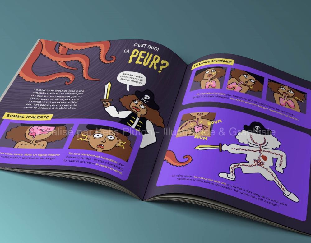 Graphise éditoriale, Illustration, Bande dessinée, Création livret pédagogique, Mise en page, Création visuelle (flyer, brochure, carte de visite)