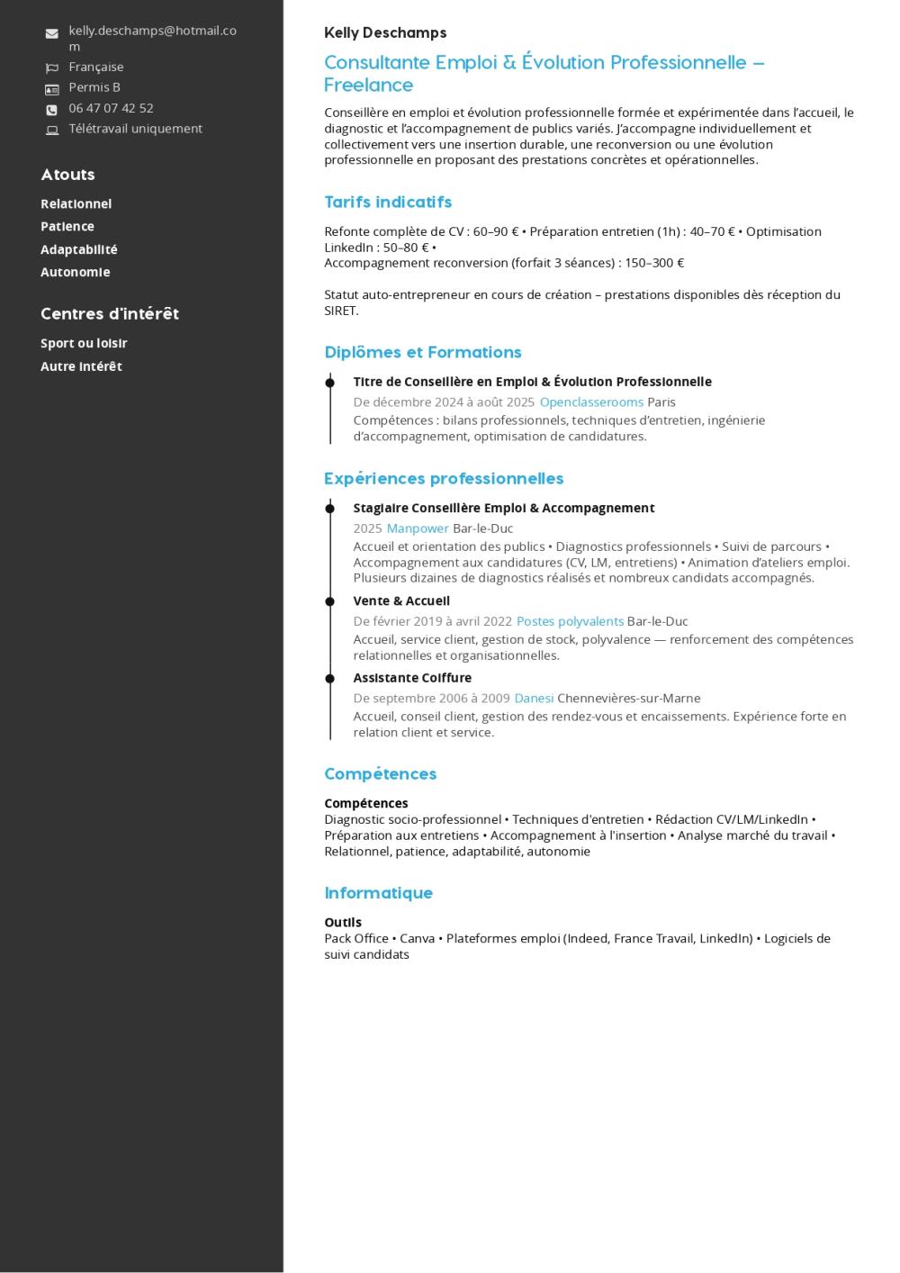 - Rédaction et optimisation de CV, lettres de motivation et profils LinkedIn