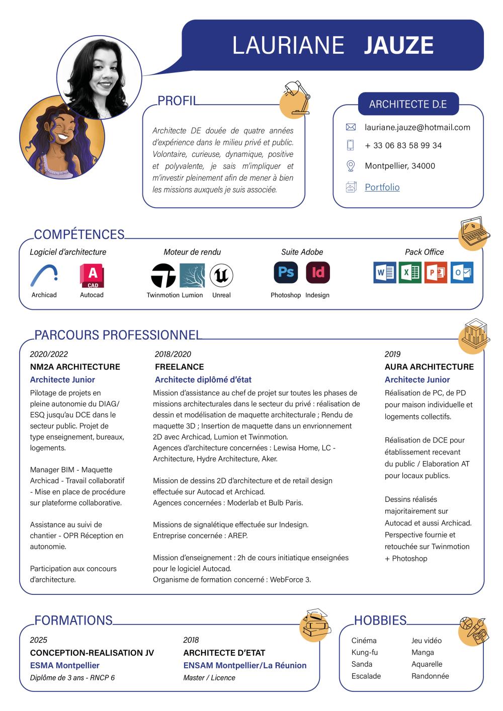 Architecte DE avec quatre ans d’expérience dans le secteur privé et public. Volontaire, curieuse, dynamique, positive et polyvalente, je sais m’impliquer et m’investir pleinement afin de mener à bien les missions auxquelles je suis associée.