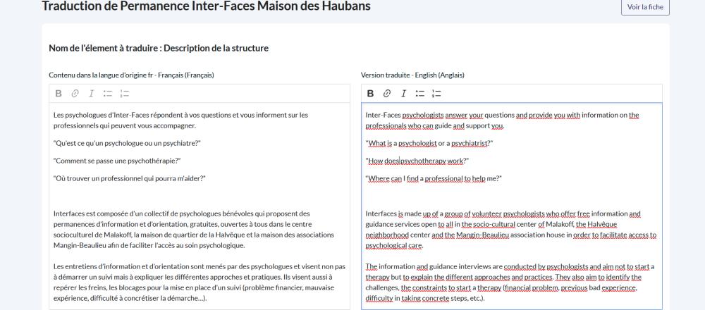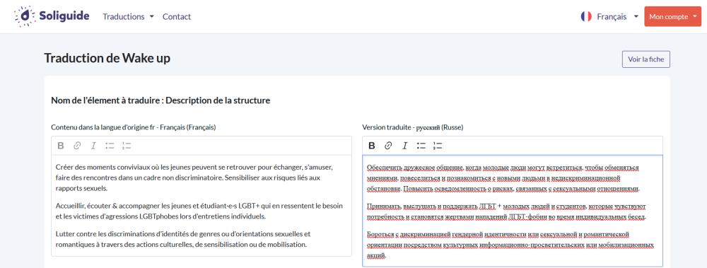 - Traductrice pour Jeveuxaider.gouv : Je traduis des textes en français, espagnol, anglais et russe afin de rendre l’information accessible aux personnes étrangères souhaitant s’intégrer en France. Grâce à l’utilisation d’un logiciel de traduction, je veille à ce que les contenus soient clairs, précis et faciles à comprendre, contribuant ainsi à faciliter les démarches administratives, sociales et professionnelles et à soutenir l’autonomie et l’intégration des bénéficiaires.