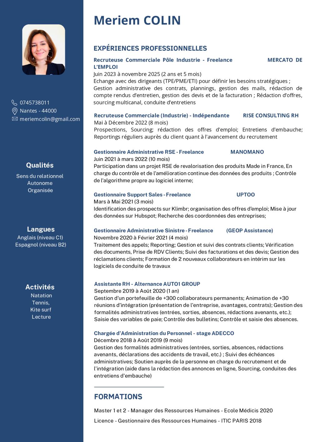 J'ai 4 ans d'expérience dans le recrutement et la relation client et 3 ans dans la gestion administrative , j’ai eu l’opportunité de travailler en relation directe avec les clients, développant de solides compétences relationnelles et un sens aigu de l’écoute. Rigoureuse, organisée et proactive, je sais gérer des dossiers complexes, anticiper les besoins et accompagner efficacement les équipes dans leurs projets.