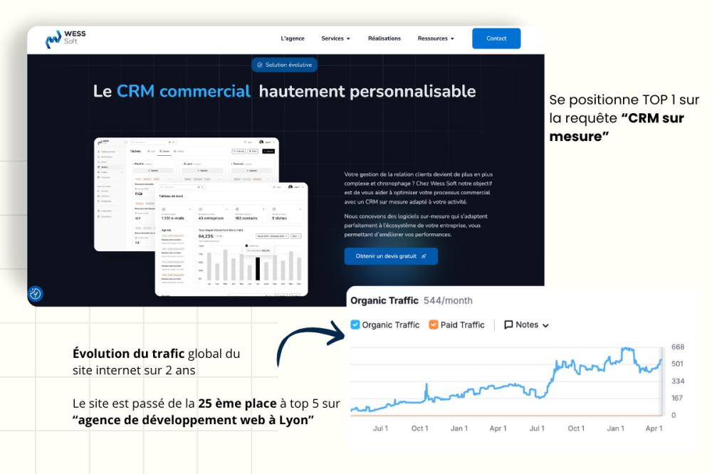 J'ai travaillé avec plusieurs acteurs Lyonnais, une agence de développement web à Lyon, j'ai pu mettre en place et piloter une stratégie SEO dans son ensemble, créer du contenu et corriger les erreurs techniques. J'ai travaillé avec des chirurgiens sur Lyon pour créer du contenu et faire de la rédaction web SEO. Mais ma première expérience en SEO a commencé dans une agence de colonies de vacances, j'étais chargée de créer du contenu qui se positionnait sur les moteurs de recherche, je devais aussi identifier des spots de guest bloging et mettre en place une stratégie de ninjaliking.