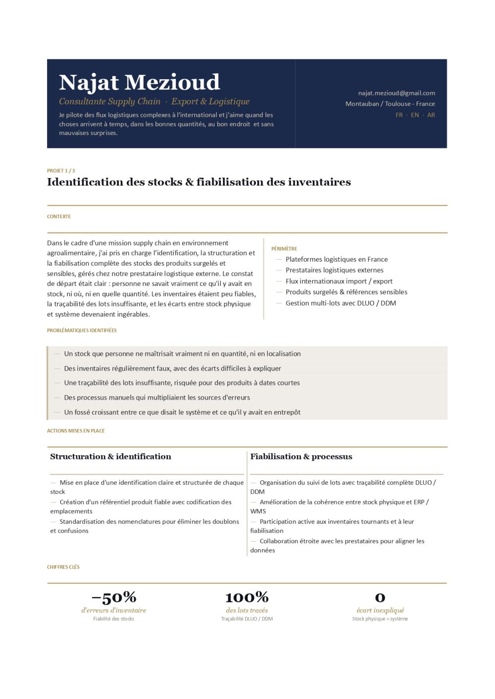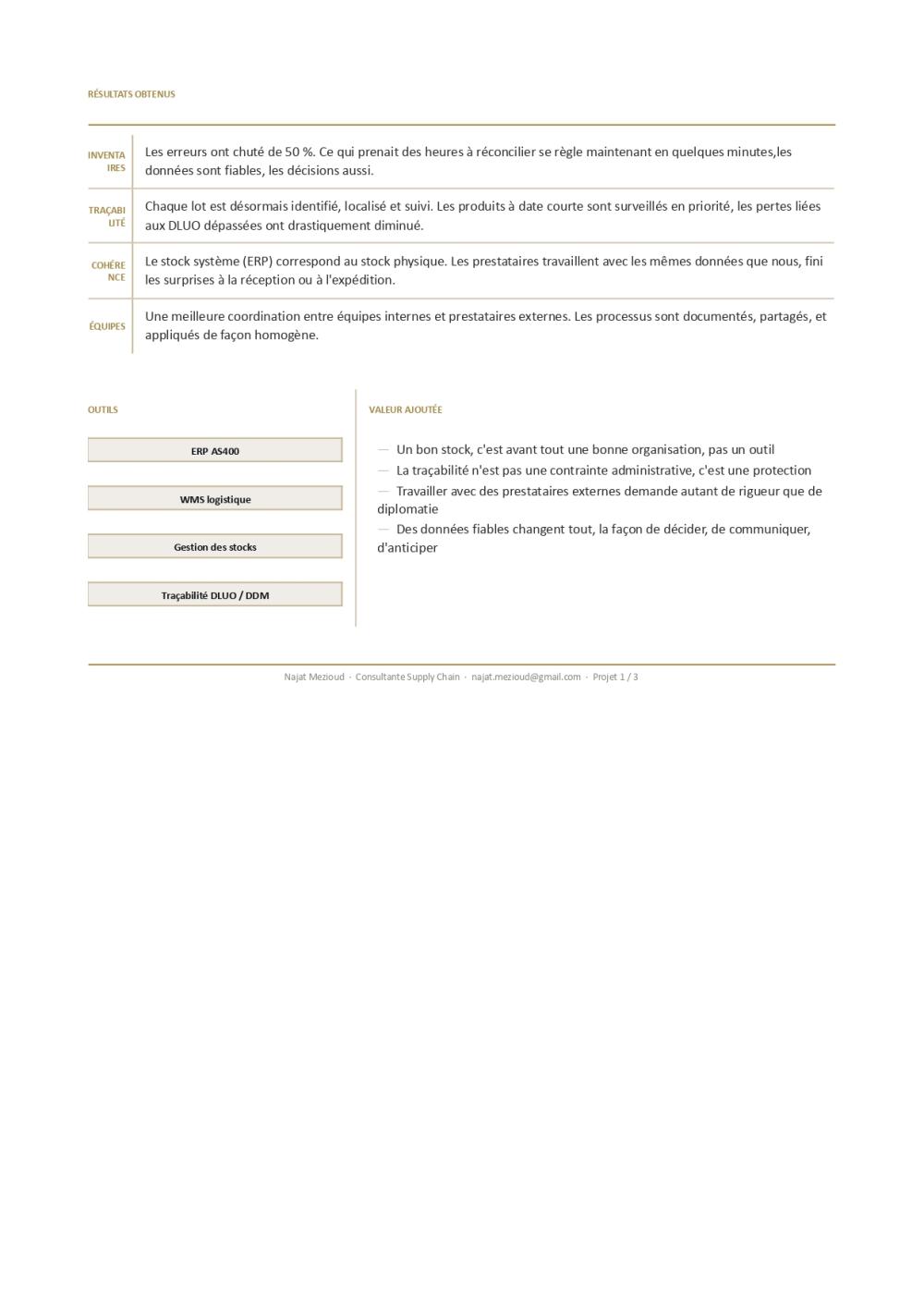 J’ai développé une expertise particulière sur des flux complexes en environnement international (Europe, Asie, Amérique latine), incluant la gestion de conteneurs complets, le pilotage de prestataires logistiques et la maîtrise des incoterms.