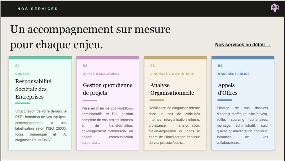 đĄServices gĂ©nĂ©raux : gestion administrative, facturation et recouvrement, suivi recrutement et sourcing, gestion CRM interne...