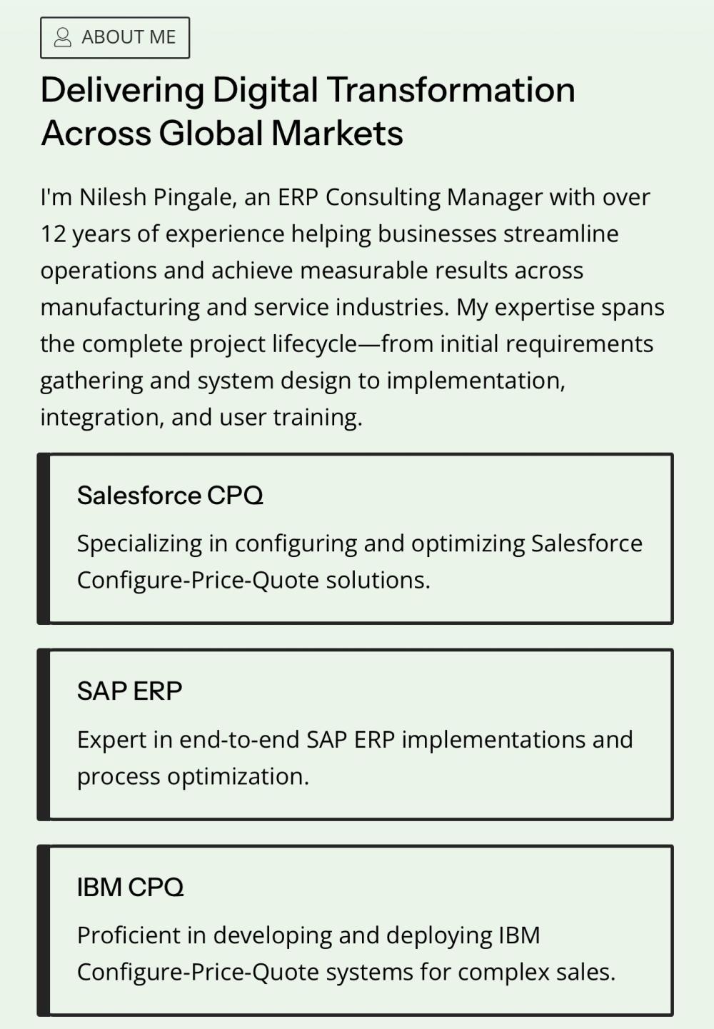 Consultant Oracle SAP SQL Sales dynamics CRM PMP Project managemnt cpq SAP CPQ