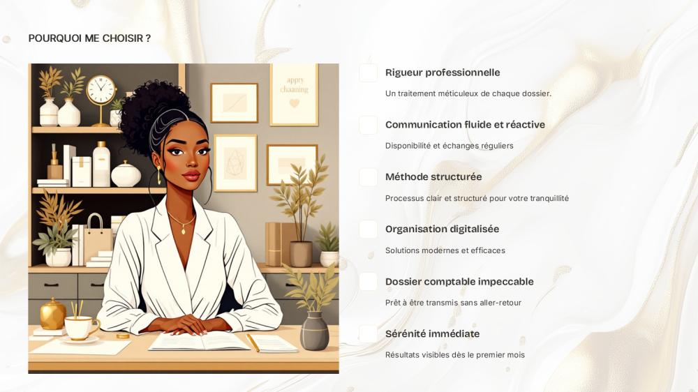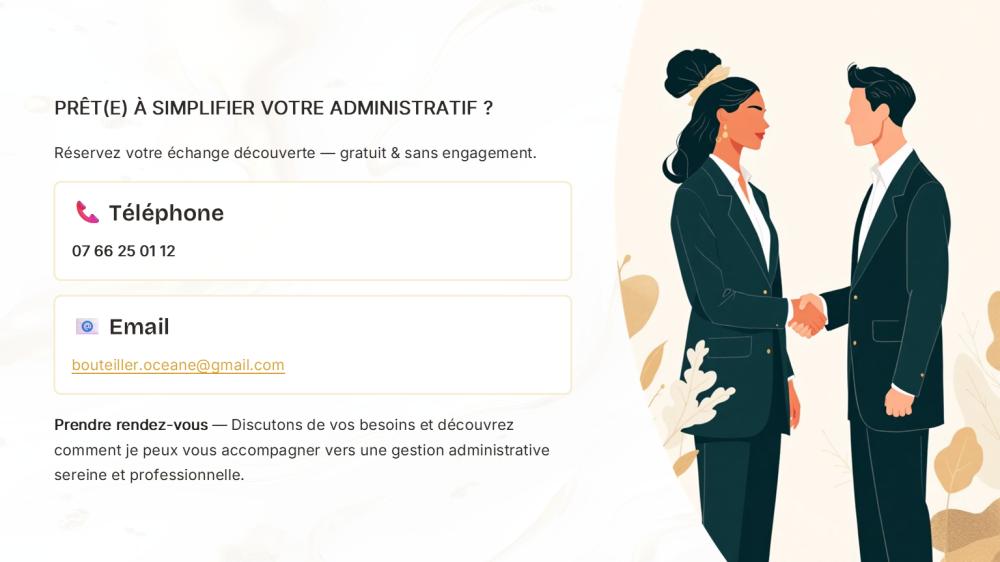 J’ai accompagné des clients dans des domaines très variés : BTP, restauration, cabinets d’avocats, traiteurs, sociétés de sécurité, etc. Aujourd’hui, je mets cette expérience au service des entrepreneurs que j’accompagne en freelance, pour qu’ils aient une gestion administrative claire, à jour, et puissent se concentrer pleinement sur leur activité.