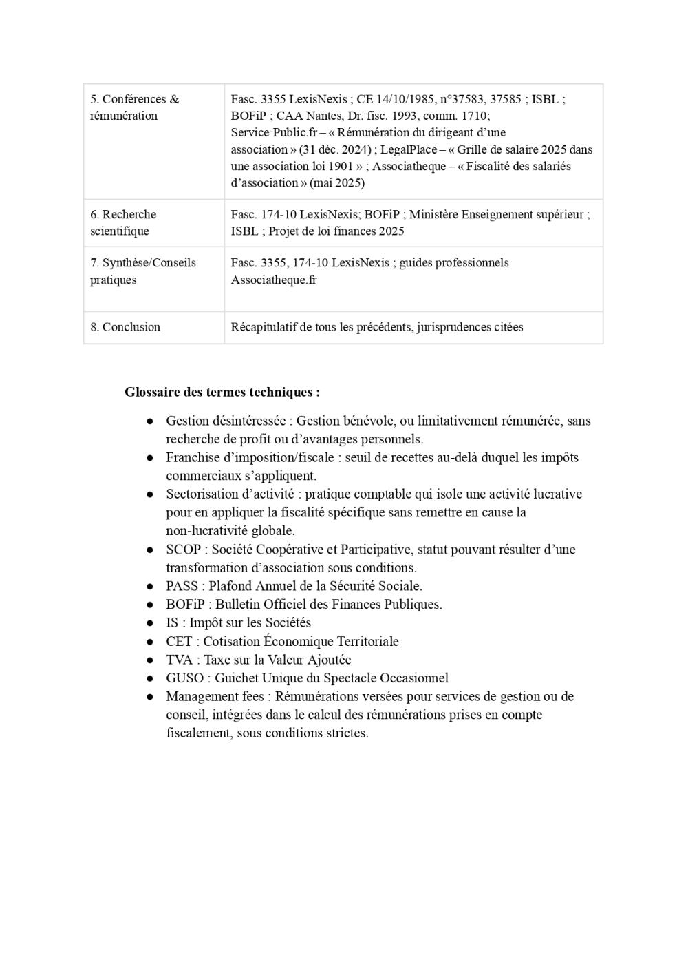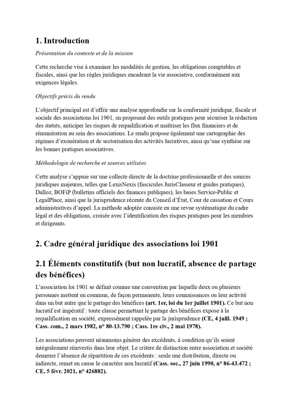 Mission de recherche et rédaction juridique pour un cabinet de conseil : réalisation d’un guide complet sur le cadre juridique et fiscal des associations loi 1901 (gestion désintéressée, activités lucratives, plafonds, risques de requalification), accompagné d’un glossaire et d’outils pratiques pour les clients. Rédaction d’une note d’analyse sur les conséquences fiscales du dépassement des plafonds de recettes lucratives accessoires pour les associations, avec recommandations opérationnelles.