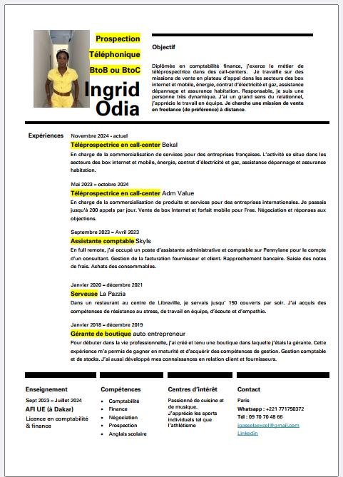 J'ai une expérience de deux ans dans différents secteurs d'activité : box internet et mobile, énergie, contrat d’électricité et gaz, assistance dépannage et assurance habitation.