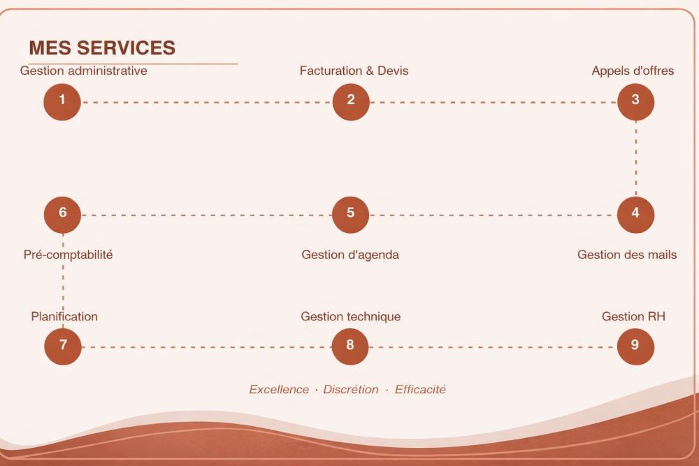 Assistante administrative et d’exploitation indépendante, je viens en aide aux entrepreneurs dans la gestion opérationnelle, le suivi des missions et la structuration administrative des projets.
