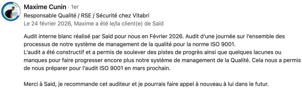 Consultant QSE Qualité Sécurité Environnement Système de Management ISO 9001 ISO 14001 ISO 45001 Audit interne Audit fournisseur