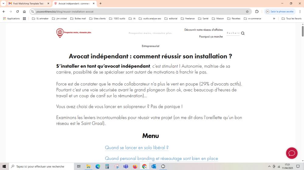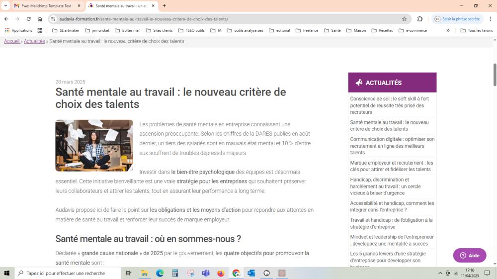 Rédaction d'articles de blog optimisés SEO/GEO : Audavia, You Work Here, Collectif Impact.