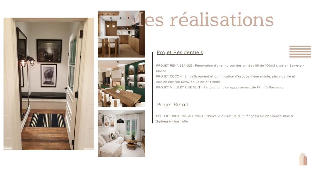 Architecte d’intérieur diplômée, je développe des projets résidentiels et commerciaux en alliant sensibilité esthétique, précision technique et attention portée au détail. Passionnée par la création d’espaces à l’identité forte, je conçois des environnements élégants et fonctionnels, pensés dans une logique de cohérence globale et de qualité d’exécution.