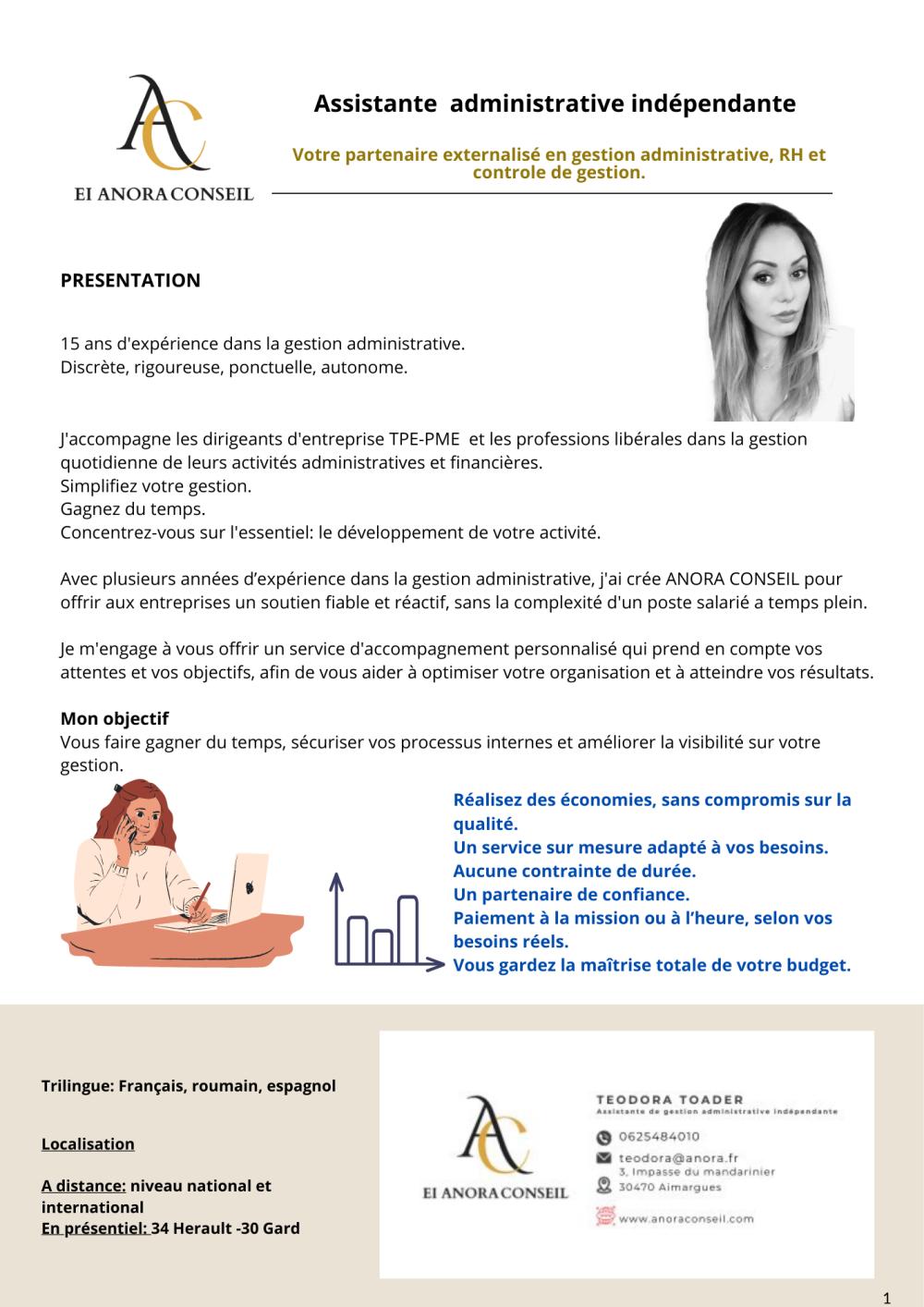 Depuis 07/2022 Entreprise Individuelle ANORA CONSEIL
