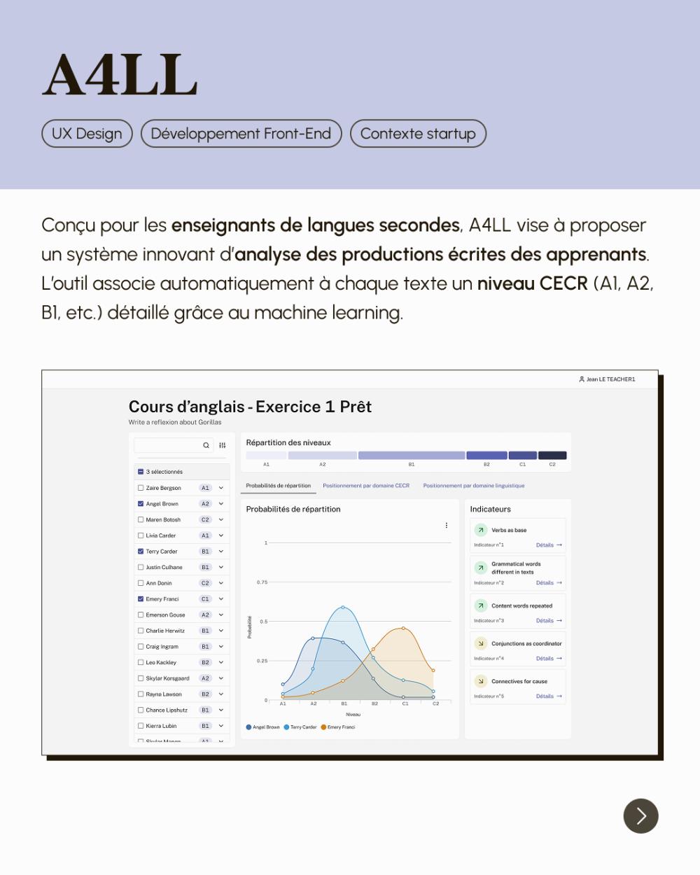 Projet visant à diagnostiquer les compétences en anglais à partir de la recherche en linguistique, initialement pour les enseignants du supérieur, puis réorienté vers les entreprises dans le cadre du recrutement.